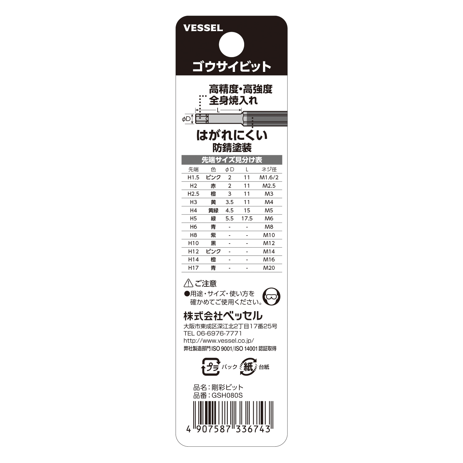 標(biāo)示 | 刀尖的分類 | 刀尖尺寸 | 主體總長(zhǎng)mm | 主體重量g | 內(nèi)包裝數(shù)量 | 外包裝數(shù)量 | 日本JAN條形碼 |