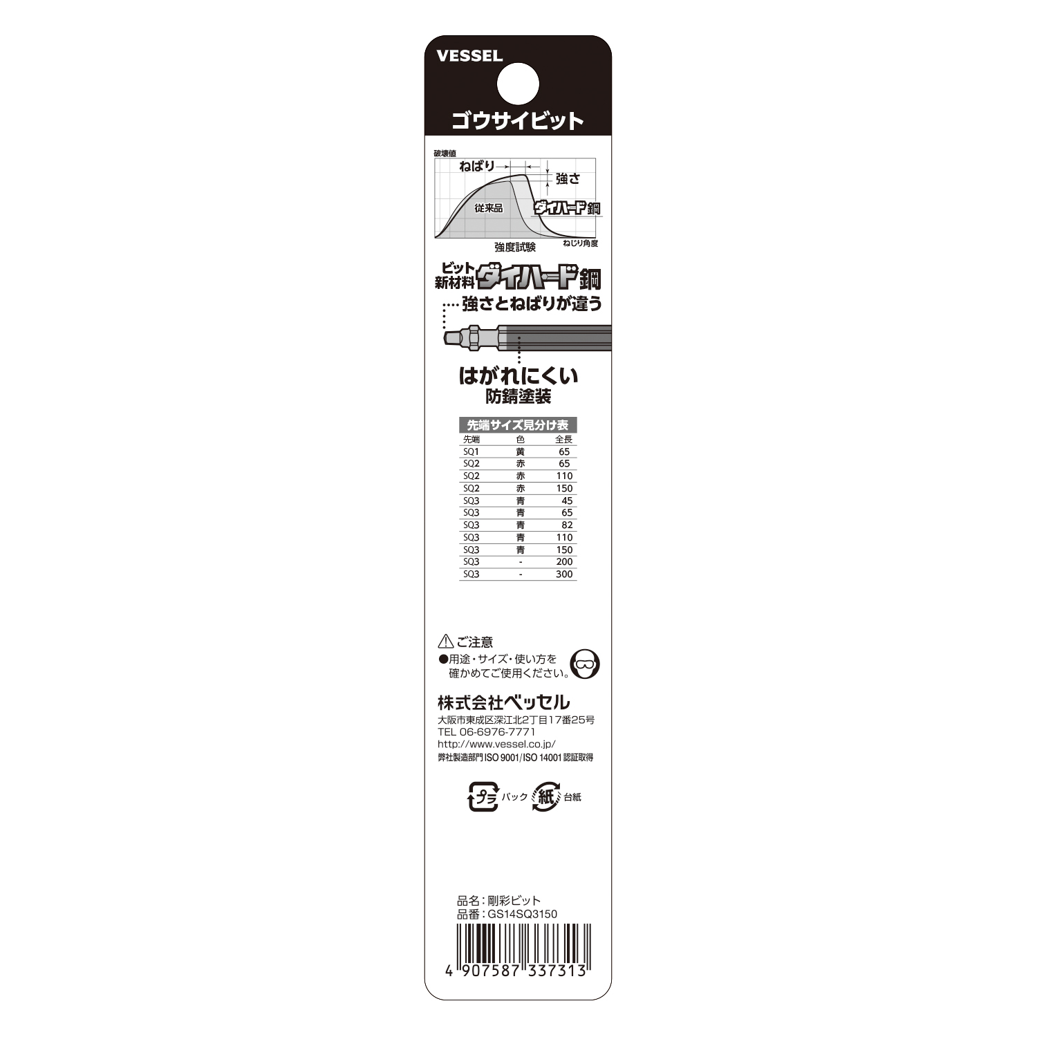 ●批頭原材料采用DIEHARD鋼材(最高硬度達HRC62)。強而柔軟,耐久性超群