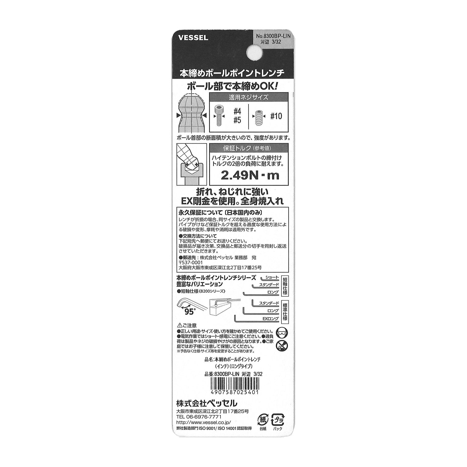 標(biāo)示 主體總長mm L型扳手的短邊尺寸mm 主體重量g 內(nèi)包裝數(shù)量 外包裝數(shù)量 日本JAN條形碼