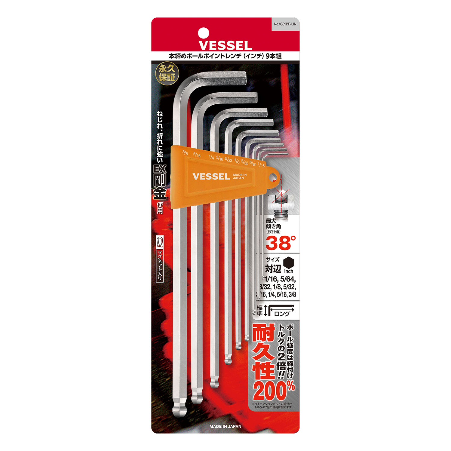 球頭內(nèi)六角扳手(加長型) (英制) 9支裝